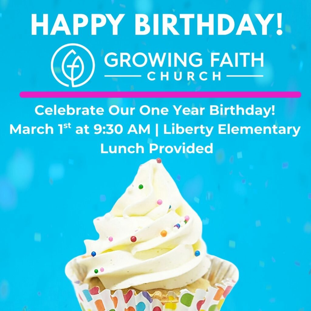 Growing Faith Church is turning one-year-old! Come celebrate a year of God’s blessings with us at our birthday celebration service on March 1st at 9:30am. We’ll enjoy a great worship service, a catered lunch afterwards, and you can’t have a birthday party without cake!
